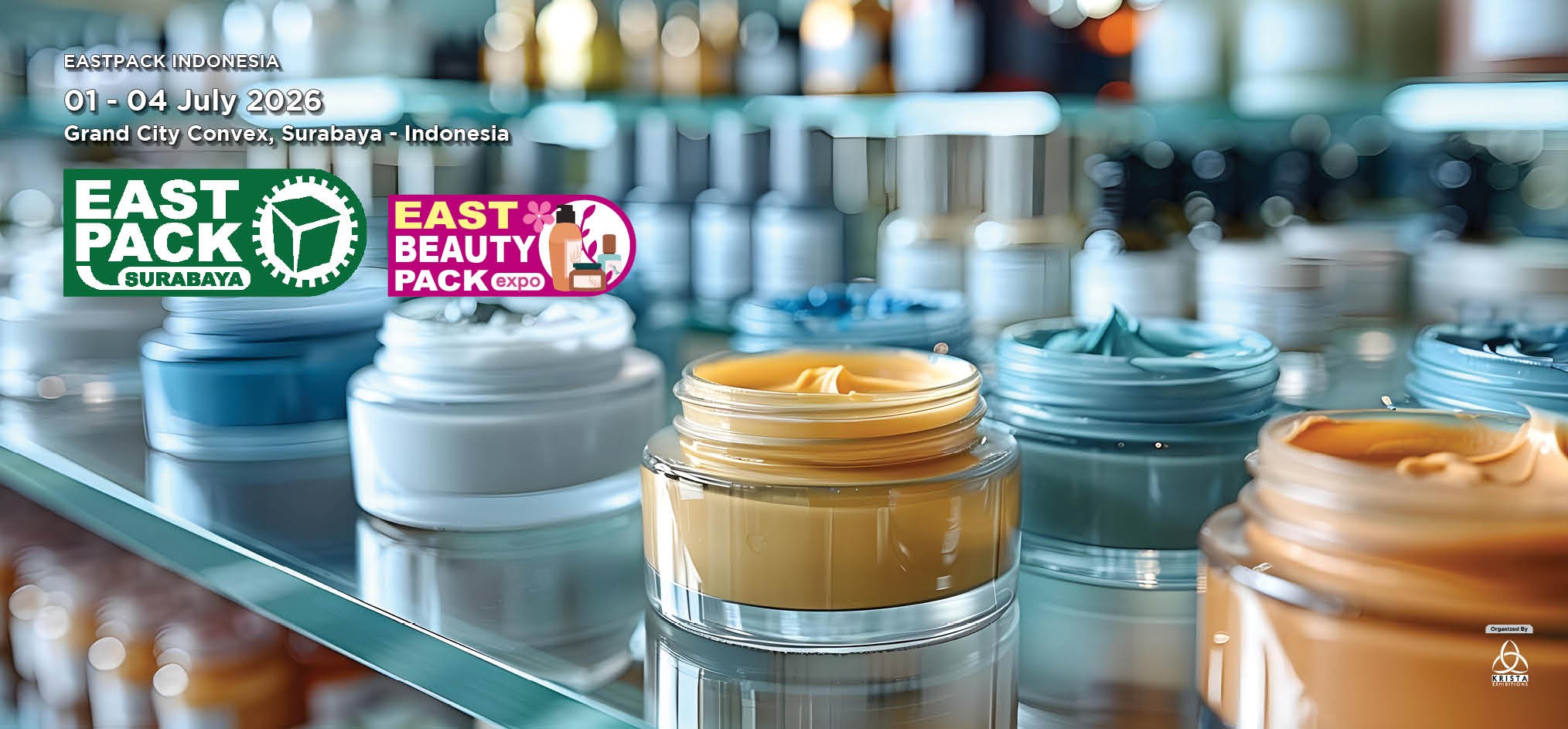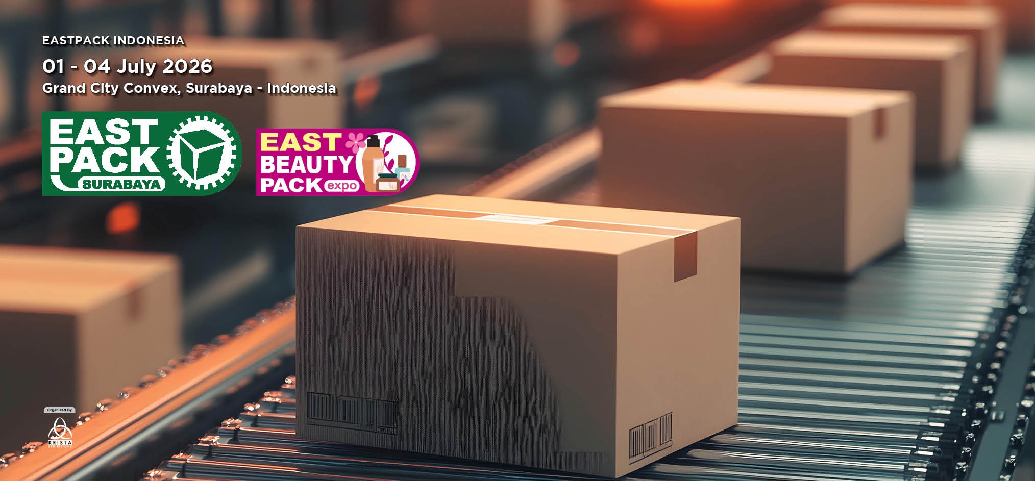 Krista Exhibitions proudly present EAST PACK SURABAYA 2026. The 16th International Exhibition on Processing, Packaging, Automation, Handling for Food & Beverage, Pharmaceutical and Cosmetic